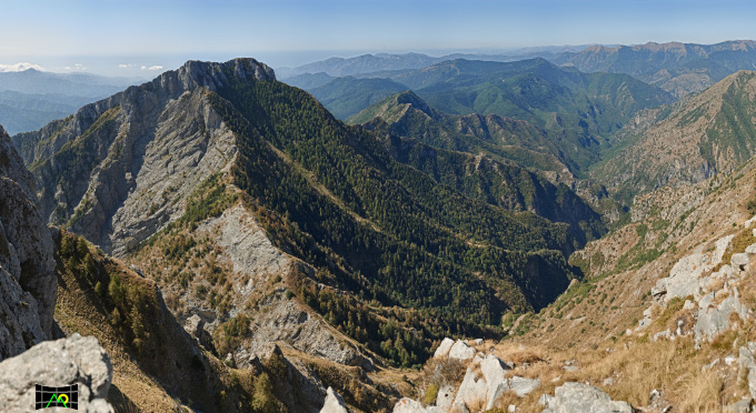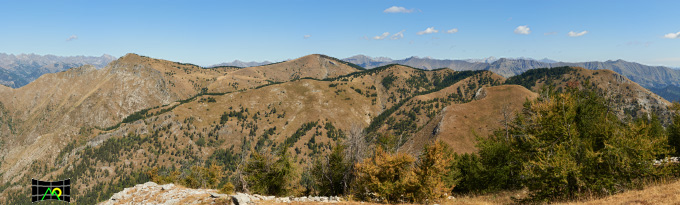 Verso nord, la conca costituita dai monti Grai, Ceriana, Cima e Balcone di Marta nella livrea tardo estiva
