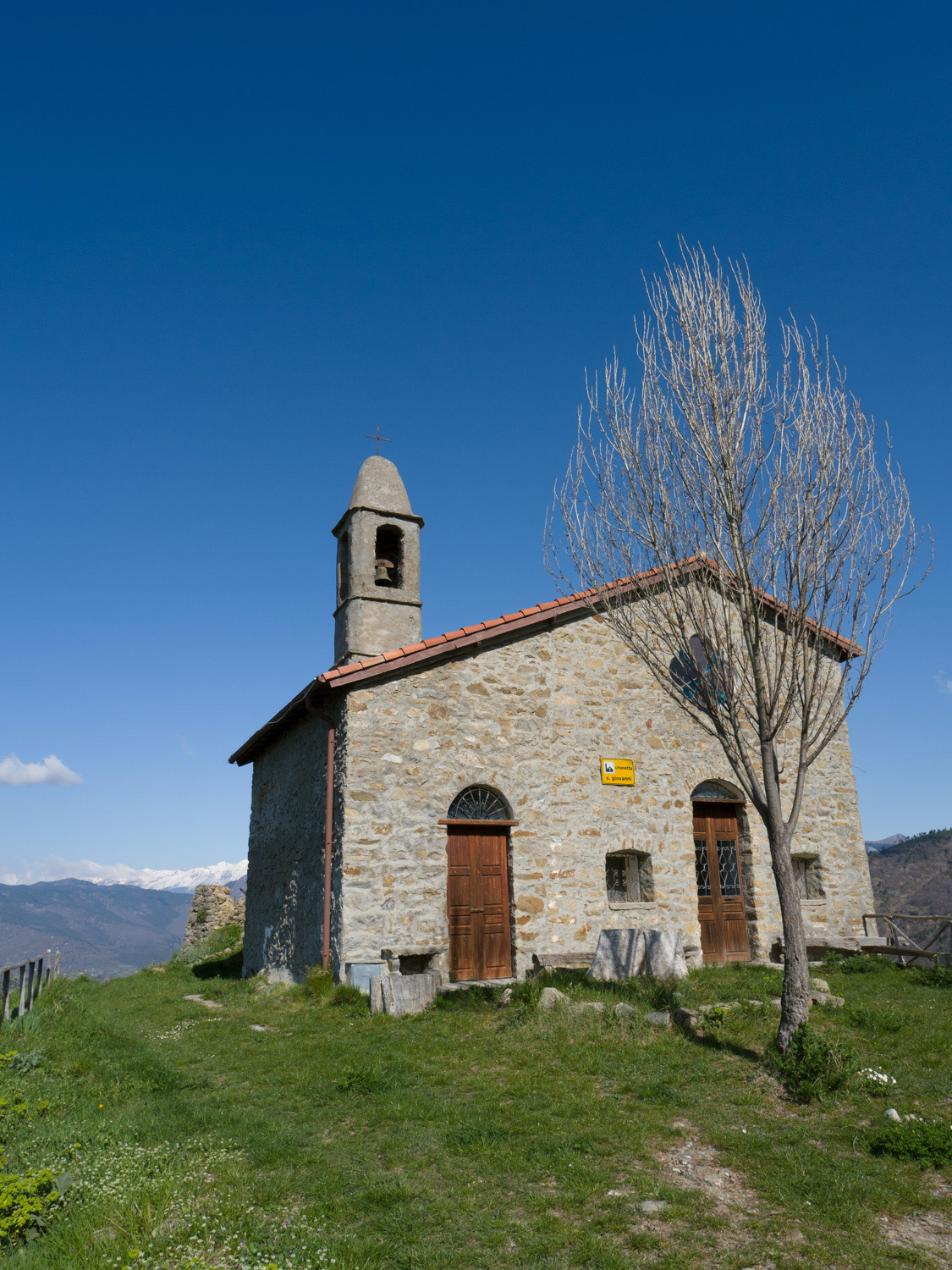 Esternamente alla chiesa vi è il “Terrazzo delle Alpi”, con una bella vista sul gruppo Toraggio-Pietravecchia e sulle marittime.
