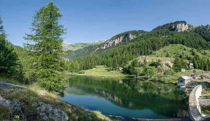 Due fotografie del Lago delle Mesce, da cui si diparte il Vallone della Miniera