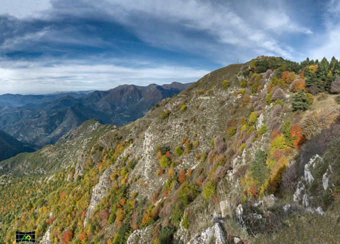 La strada che serpeggia dolcemente nella foresta di Gouta-Testa d’Alpe, una delle estese della Liguria, costituita da abeti bianchi, faggi, pini silvestri, aceri di monte, saliconi (salice delle capre), e nelle propaggini più elevate, anche da larici.