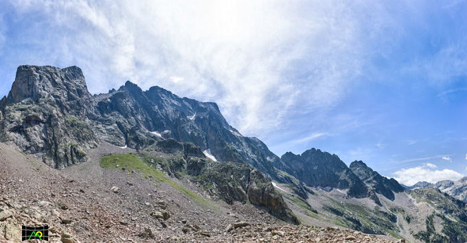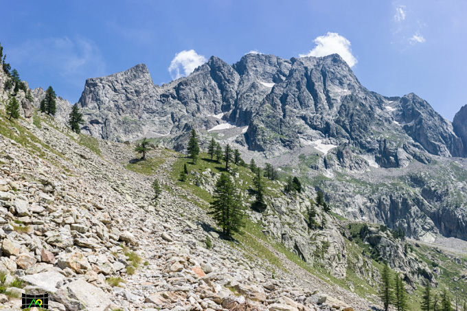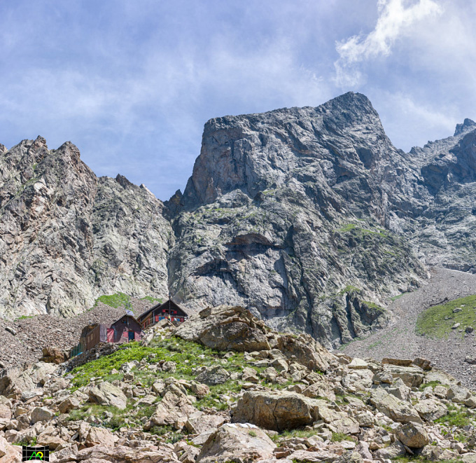 Il rifugio Bozano e sullo sfondo il Corno Stella