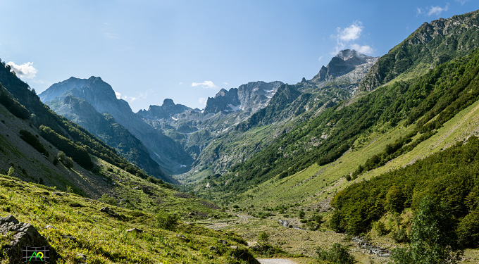 Il Vallone di Moncolomb con lo sfondo delle cime giacenti sulla linea di confine