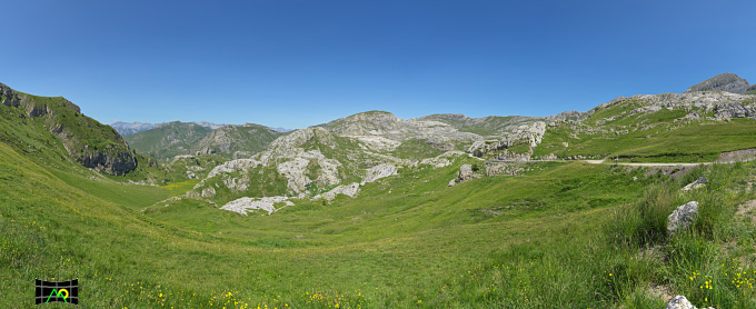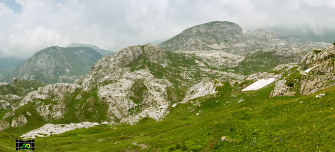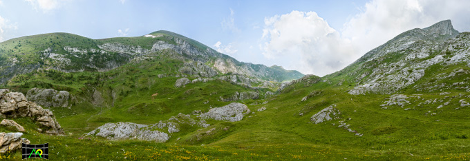 In questa panorama spicca la splendida fioritura dei rododendri sui fianchi del Monte Pertega.