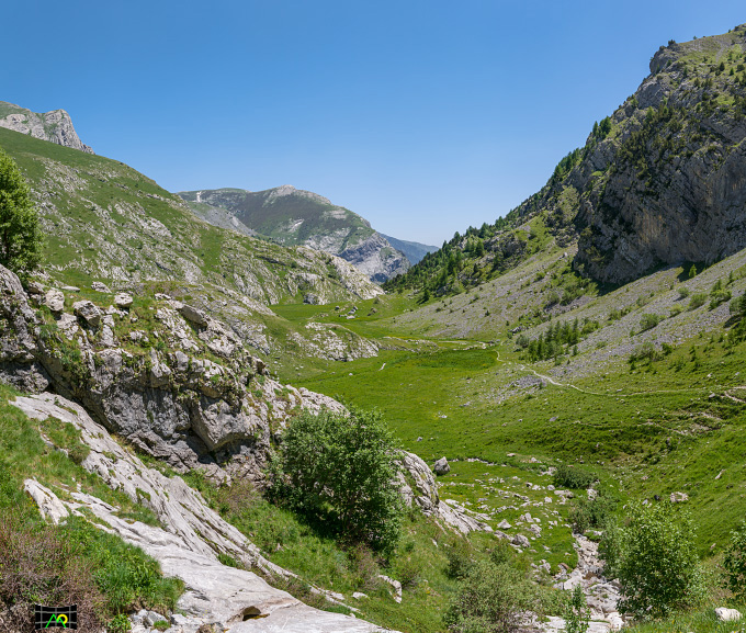 Vista dal Colle dei Signori verso il Rifugio Don Barbera e la Valle dei Maestri