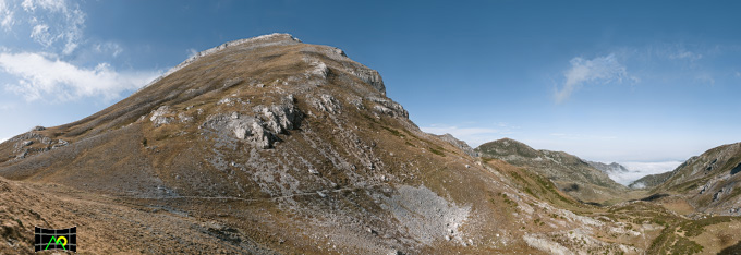 Vista dal Pian Rosso verso il Monte Mongioie. In primo piano l’omonimo rifugio
