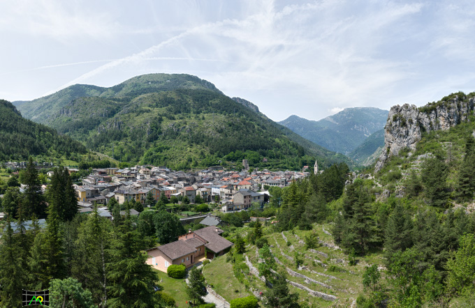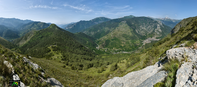 Il paese di La Brigue (Briga) visto dall’imbocco del vallone di Boselia